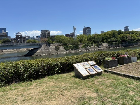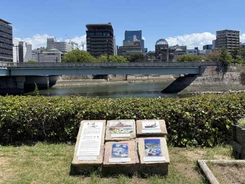 Installed at a location where the Atomic Bomb Dome can be seen across the bridge