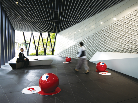 Characterized by the distinctive texture of ceramics and its vivid red color, it makes a powerful impact simply by being placed in a space. Produced under the supervision of Shimada Tamotsu, representative of TEAM INARI who designed the logo, using 3D data.