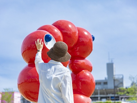 此花区正連寺川公園の「大阪・関西万博ロゴシンボル」