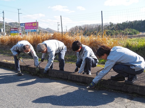 4月に入社したばかりの新入社員も交え、社員一同で、道路周辺に生えた雑草やゴミを一掃し、入学や新学期を迎える子どもたちや弊社従業員が気持ちよく安全に通勤・通学できる環境を整えました。