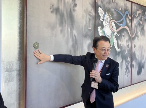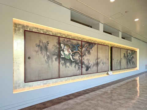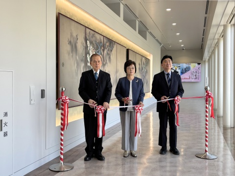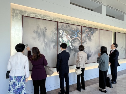 4月12日、東京富士美術館の3階常設展示室と企画展示室を繋ぐ廊下に、複製陶板「風神雷神図襖」が設置され、公開を記念したテープカットが行われました。
