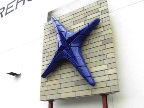 色目(釉薬表現)の方向性と表面テクスチュアなどの意匠面の確認のため、レリーフの一部を原寸大の大きさで試作することになりました。当初は、製作が難しいと考えられる複雑な形状のピースと、レリーフの「顔」でもある牧神の頭部の原寸大試作が予定されていましたが、意匠面と合わせて取付方法も具体的に検証する必要があると考え、これに加えて「星」一体を原寸大で試作し、金物の取り付けから施工試験まで行うことになりました。