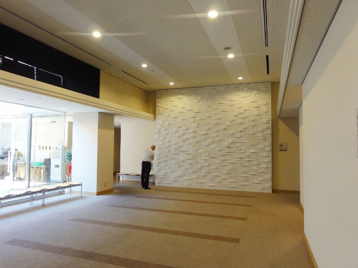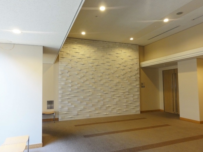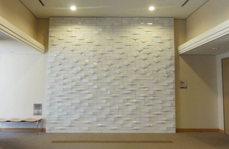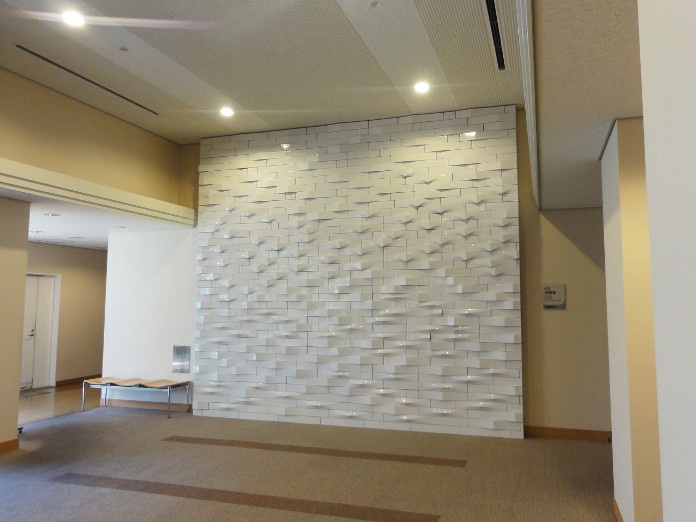 実績紹介 生野区役所 6F 物件名 生野区役所 6F 作品名 「鶴舞」(つるまい) デザイン 大塚オーミオリジナル 作品寸法 H4000×W4500㎜ 都道府県 大阪府 製品区分 テラコッタ 製作年 2005年