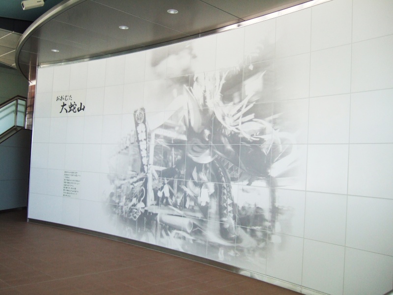 実績紹介 九州新幹線新大牟田駅 物件名 九州新幹線新大牟田駅 作品名 「夏祭り『大蛇山』」 作品寸法 H3600×W7800(600角×96枚) 設計/施工 株式会社交建設計 都道府県 福岡県 製品区分 OTセラミックス 製作年 2010年