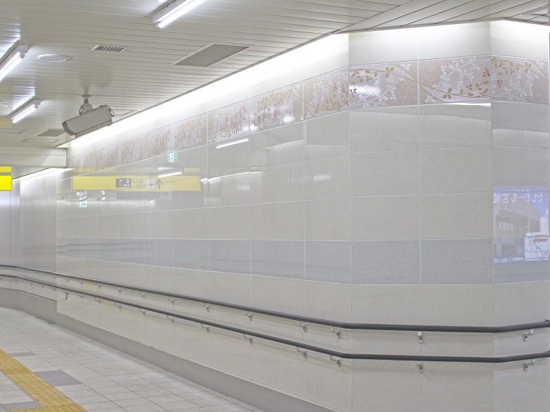 実績紹介 仙台市地下鉄東西線 薬師堂駅 物件名 仙台市地下鉄東西線 薬師堂駅 デザイン 大塚オーミオリジナル 作品寸法 295×900㎜ 77枚/360×400㎜ 7枚/358×400㎜ 10枚/356×400㎜ 7枚 都道府県 宮城県 製品区分 OTセラミックス 製作年 2015年