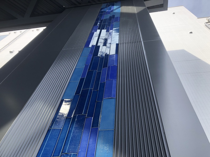 吉野川の雄大な流れをイメージし、徳島を象徴する藍、しじら織などの要素を取り入れ、美しい水面の揺らめきを表現しています。