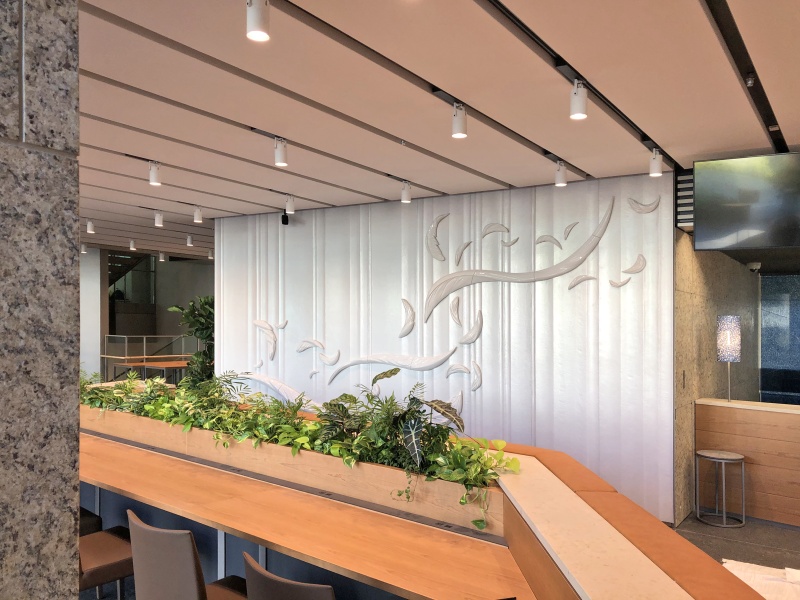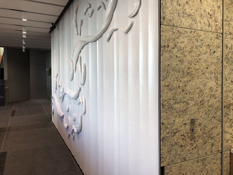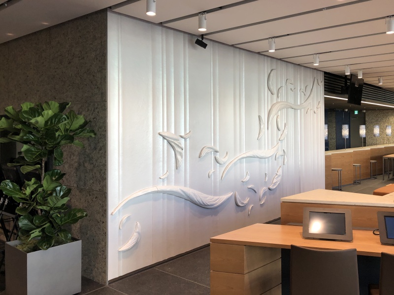 実績紹介 阿波銀行本店 物件名 阿波銀行本店 デザイン 大塚オーミオリジナル 作品寸法 H2835×W5400×t20㎜、H40~180×W150~160×t30~70㎜ 40ピース 都道府県 徳島県 製品区分 大型陶板、テラコッタ 製作年 2019年