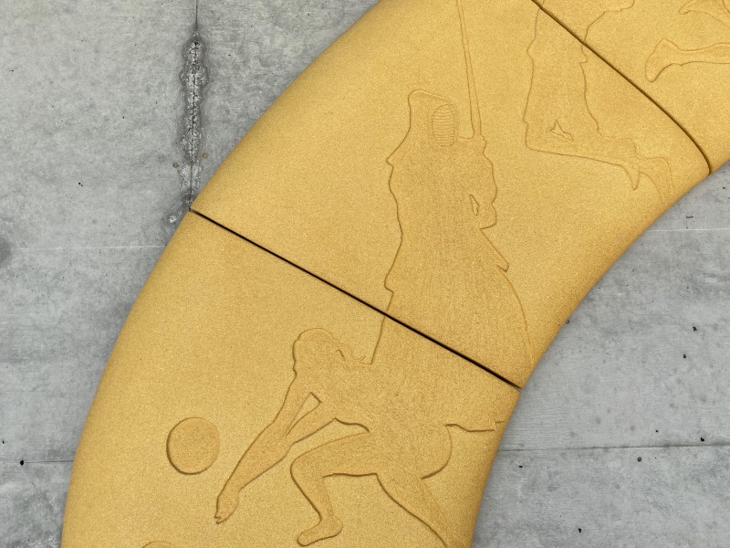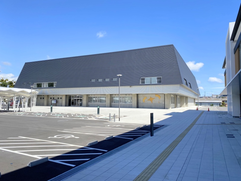市章の中にスポーツをする人々のシルエットを彫り込むことで、水口体育館で運動する市民の活気や未来への希望を表現しています。