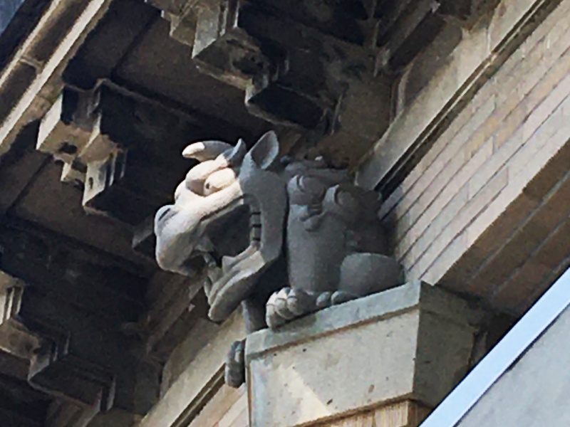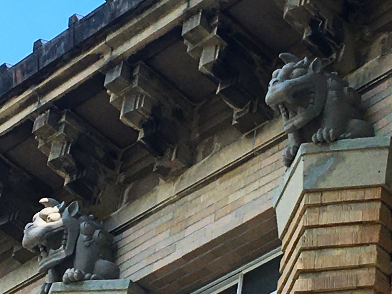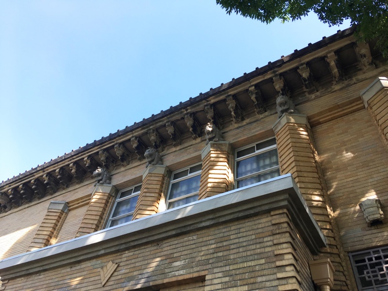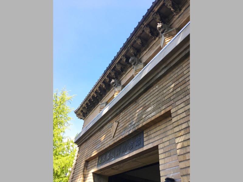 復興記念館は、1923年に発生した関東大震災の被害や復興を後世に伝えるために建てられた施設で、1931年に開館しました。「怪獣像」はその正面入り口上に、開館当初から設置されていた石像です。