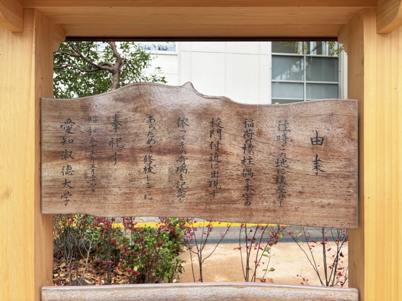実績紹介 愛知淑徳大学 稲荷神社サイン 物件名 愛知淑徳大学 稲荷神社サイン 作品寸法 H351×W765×t13 ㎜、H378×W765×t13 ㎜ 都道府県 愛知県 製品区分 OTセラミックス 製作年 2024年 既存の木製解説板の劣化から、原物を撮影し、陶板に転写して再製作した。木の形状に合わせ陶板を加工する等、風合いを再現している。