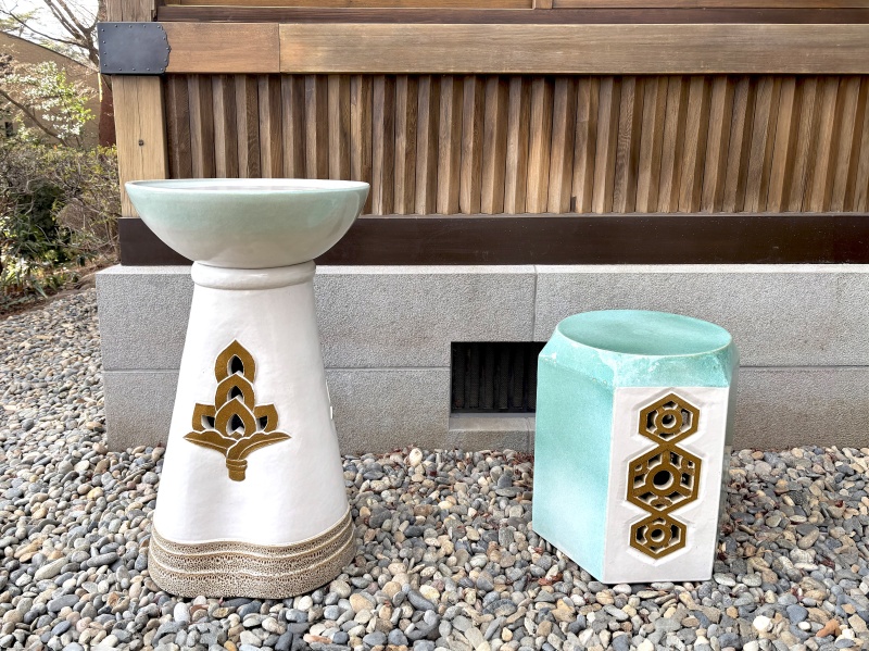 弊社は、庭に設置されていたガーデンテーブルと椅子を復元しました。当時と同じ位置に設置されています。