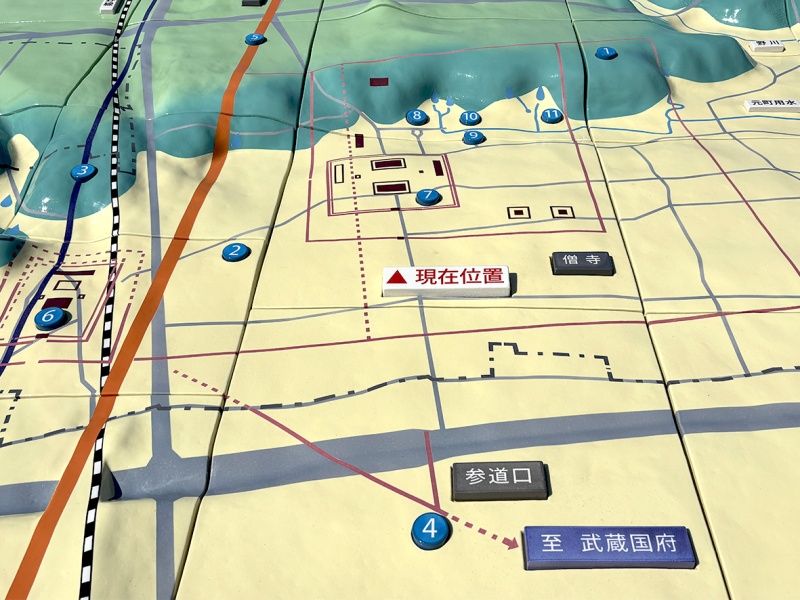 武蔵国分寺を構成する金堂・講堂など主要建物の中軸線を大切にしつつ、武蔵国分寺が造られた自然環境や地形を分かりやすく製作しました。