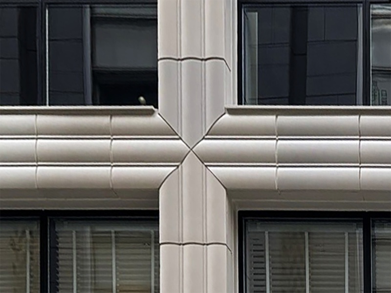 銀座6丁目にある「GINZA M TOWER」は昭和39年の竣工以来、銀座の中心商業・オフィス地区の風景を形成してきました。この度リニューアル工事が行われ、弊社のテラコッタを外装材として採用いただきました。繊細なリブ形状に施された艶消しの釉薬が柔らかな陰影を生み、以前からそこにあったような錯覚を覚える落ち着いた佇まいが印象的です。この地に相応しい品格を備えながら確かな存在感を放つ建物になったと評価されています。
