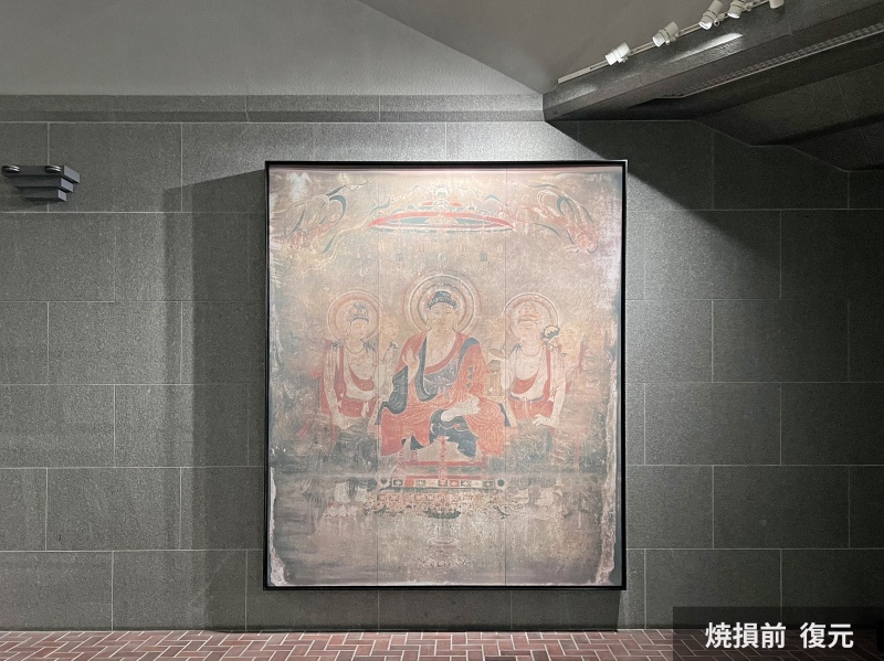 特別に収蔵庫に入らせていただき、原物の色調・質感・凹凸などを確認。さらに、3Dデータを活用し、火災により変形した壁画のうねりまで忠実に再現しています。
