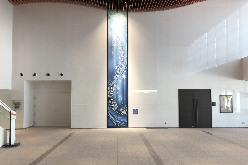 藍が育つ肥沃な土地をもたらした吉野川の清流と輝く水面をモチーフに、人と町が大きく