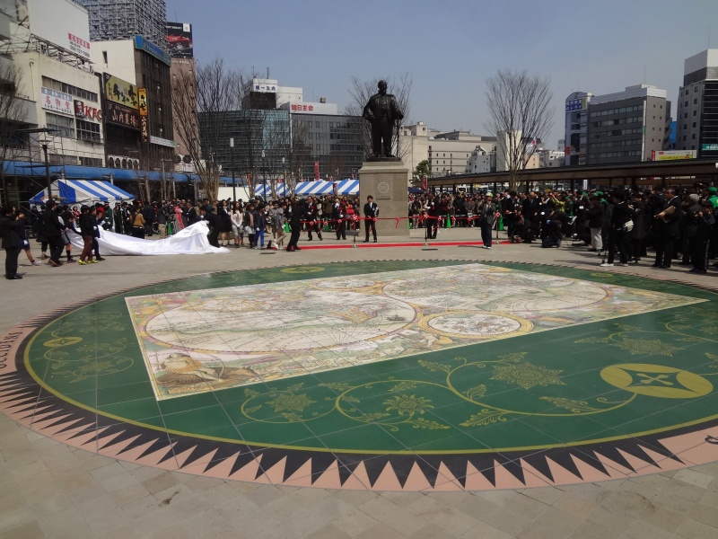 「献上博多織」をモチーフとして、親子縞と華皿を、立体的に表現しています。 訪れる